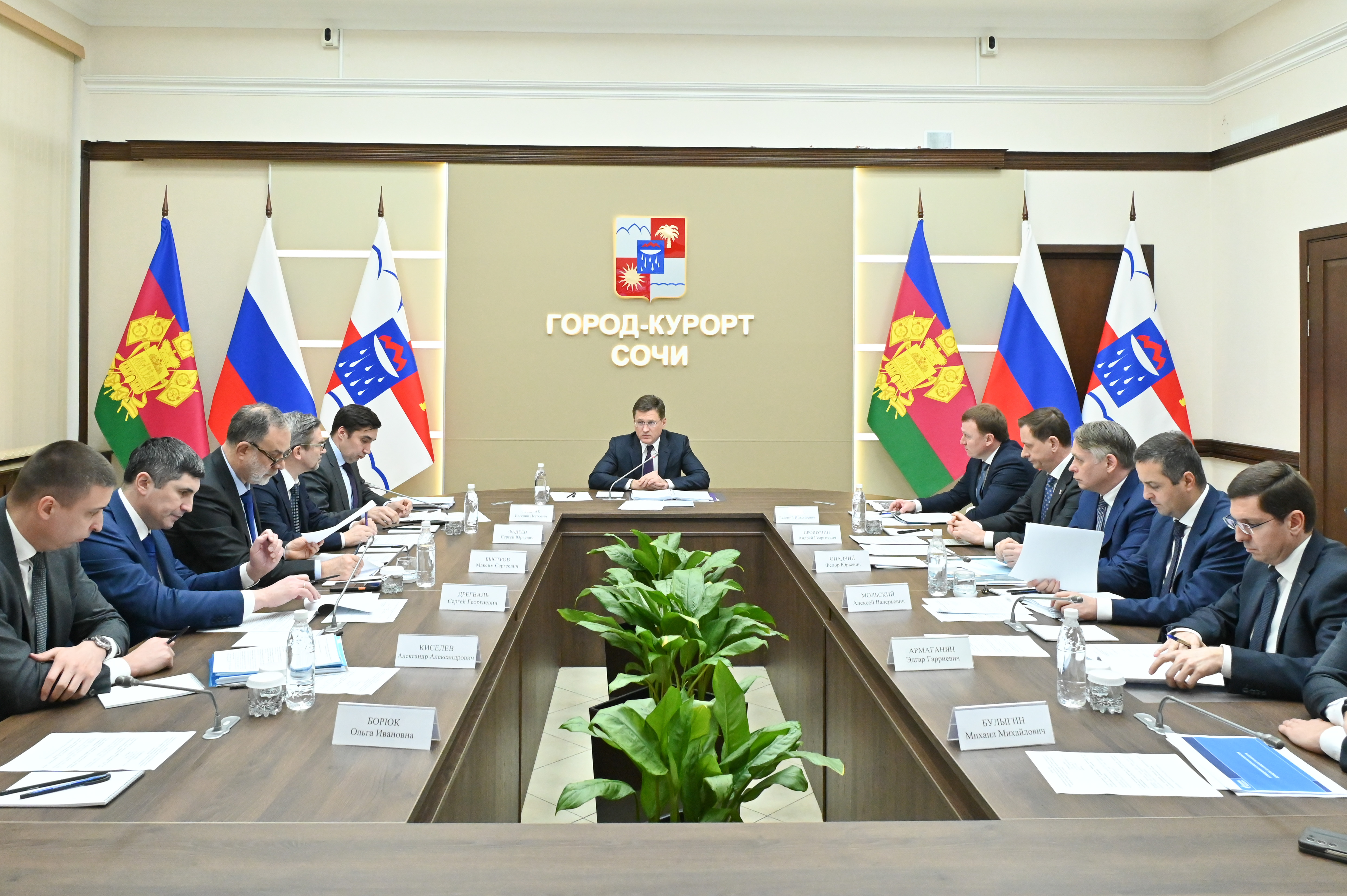 Вице-губернатор Краснодарского края Евгений Пергун доложил о текущей ситуации и мерах, предпринимаемых региональными властями для развития энергосистемы Сочи. Он подчеркнул необходимость скорейшего решения вопроса с выделением земельных участков для строительства и реконструкции энергообъектов, отметив важность взаимодействия всех заинтересованных сторон.