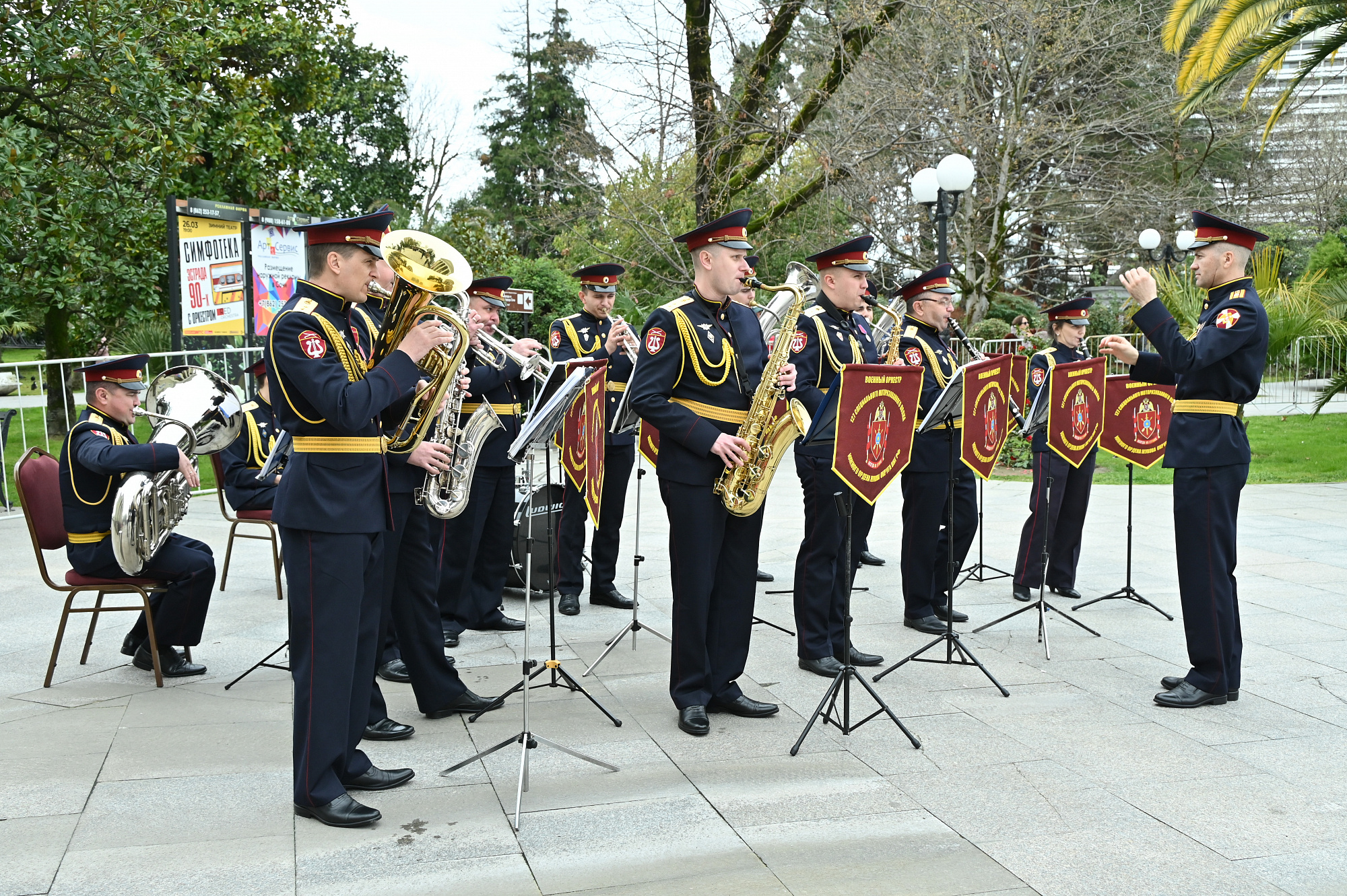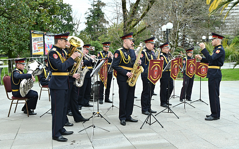 В Год единства народов России в концерте к 10-летию Росгвардии выступили сочинские творческие коллективы: ансамбль казачьей песни «Любо», народный ансамбль танца «Жемчуг», образцовый ансамбль адыгского танца «Шапсугия», народный ансамбль армянского танца «Амшен» и ансамбль барабанщиков «Ереван».