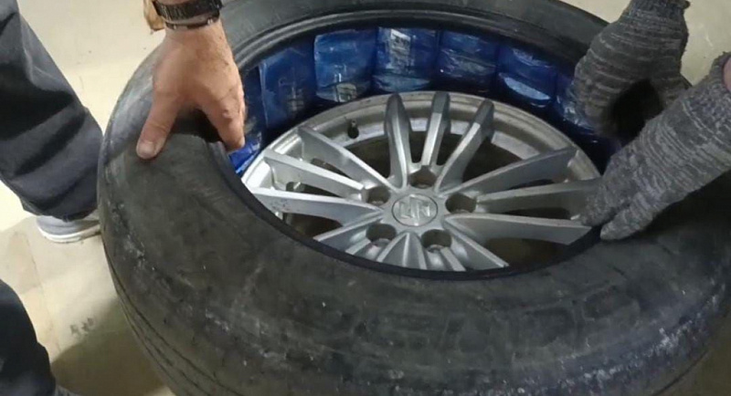 По результатам досмотра транспортного средства СУЗУКИ ГРАНД ВИТАРА во всех четырех колесах были обнаружены скрытые полости с сигаретами. После демонтажа колес было извлечено 1280 пачек (25600 шт) сигарет марки AMERICAN FLAVORО, произведенные в ОАЭ.