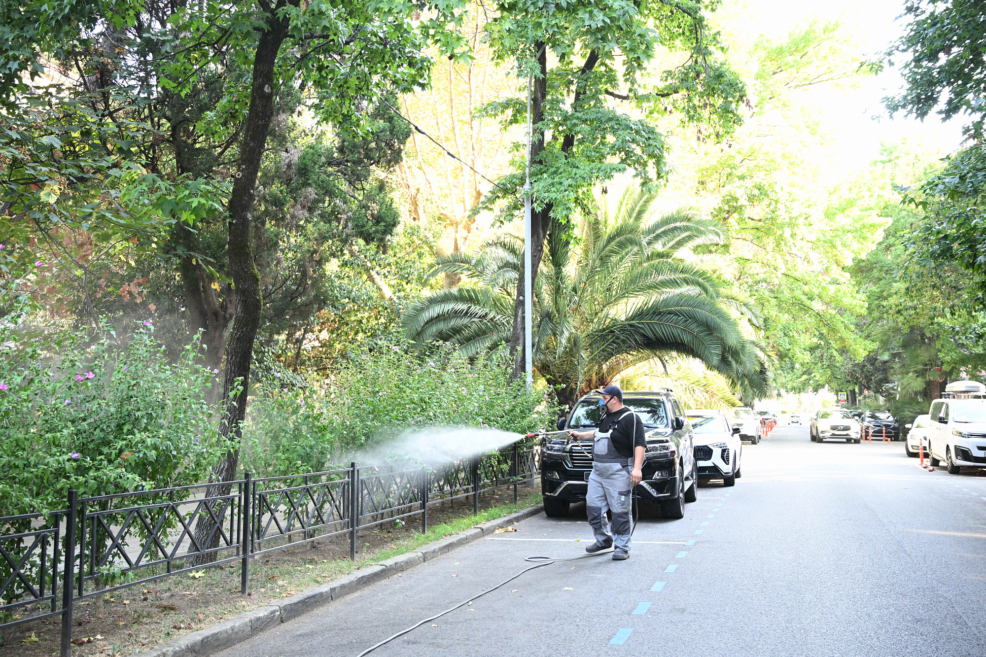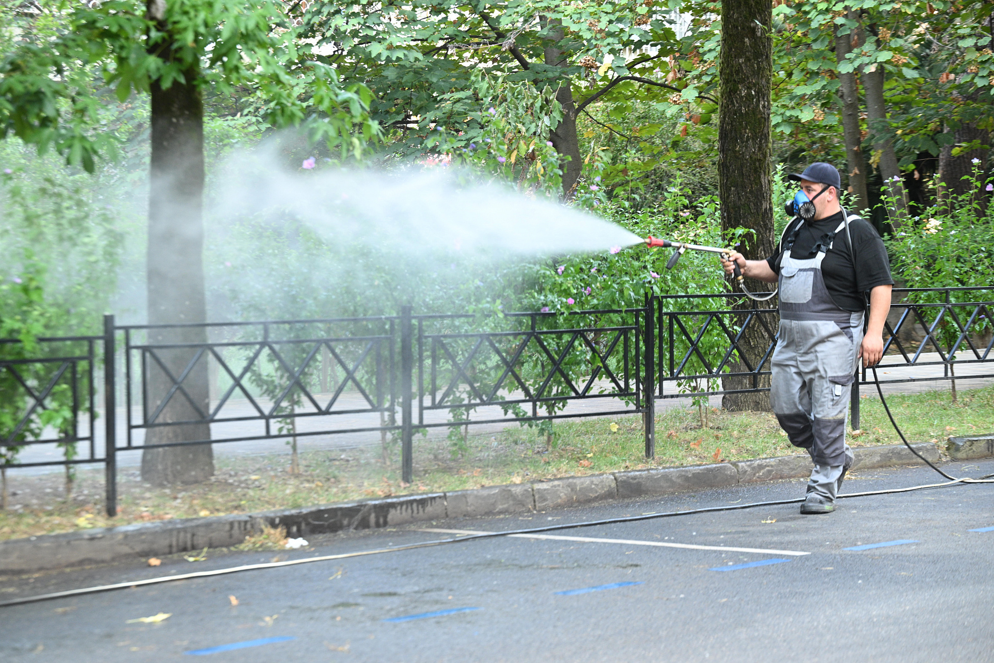 Сейчас начата обработка зеленых насаждений против второй генерации гусениц американской белой бабочки. В субтропическом климате с долгим теплым летом таких поколений за год может быть до трех. Ранее в июле уже была проведена обработка деревьев от первого поколения гусениц.