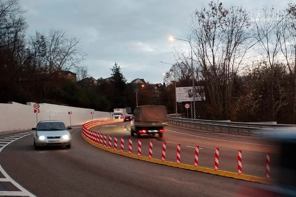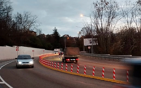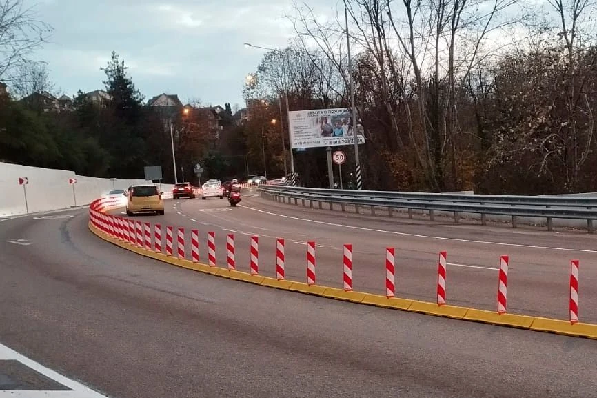На всем участке установлены новые делиниаторы, нанесена разметка.
