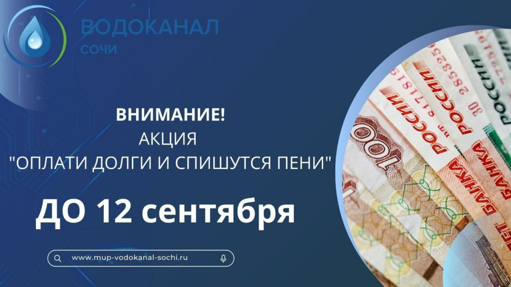 Чтобы принять участие в акции, абонентам Водоканала необходимо оплатить всю задолженность за воду (без пеней) по квитанции до 12 сентября, и пени спишутся автоматически в полном объеме.
