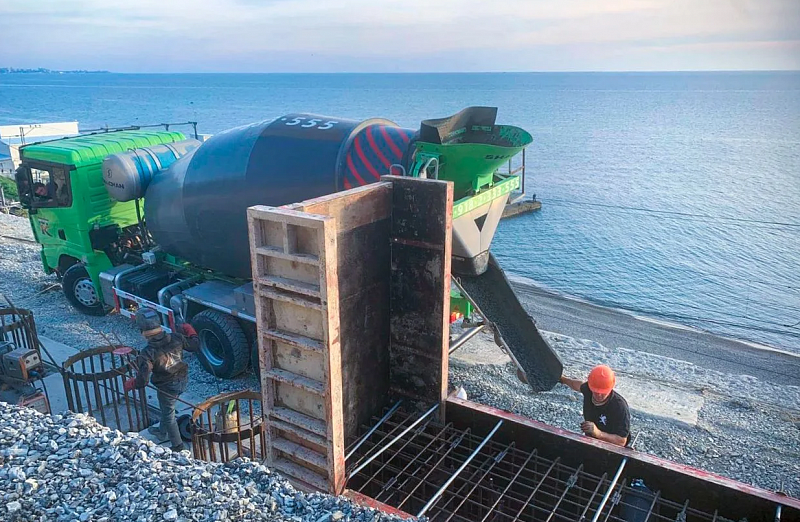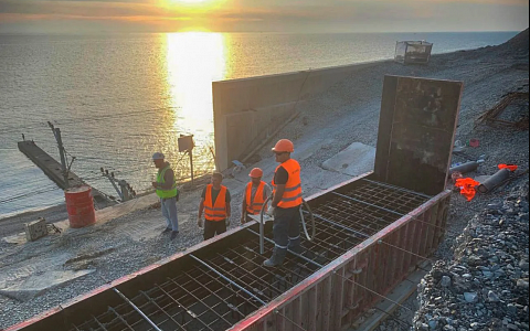 Первая, двухрядная подпорная стена длиной 80 метров была полностью готова еще в мае. Затем работы приостанавливались на курортный сезон. Бетонирование ростверка второй, однорядной стены длиной 55 метров за пределами оползневого участка будет проходить в четыре этапа, первый из которых уже выполнен. Закончено также погружение горизонтальных анкерных свай со стороны железной дороги. Теперь рабочие связывают их швеллерами для большей прочности всей конструкции.