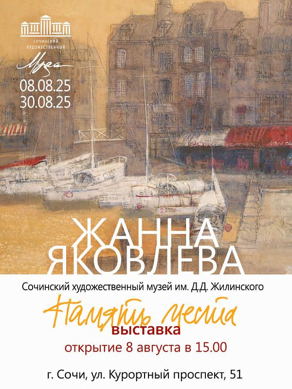 В пятницу, 8 августа 2025 года, в Сочинском художественном музее им. Д.Д. Жилинского откроется персональная выставка Жанны Яковлевой «Память места».