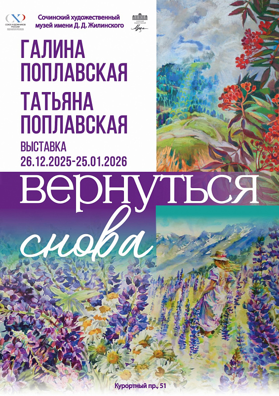26 декабря, в пятницу, в 15.00 в Сочинском художественном музее им. Д.Д. Жилинского открывается выставка Галины Поплавской и Татьяны Поплавской «Вернуться снова».
