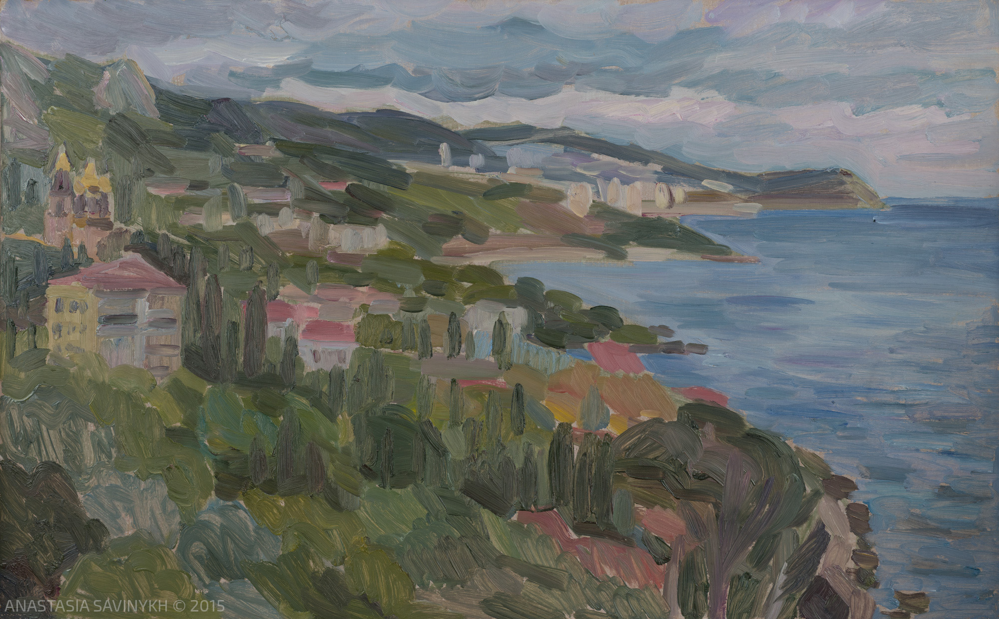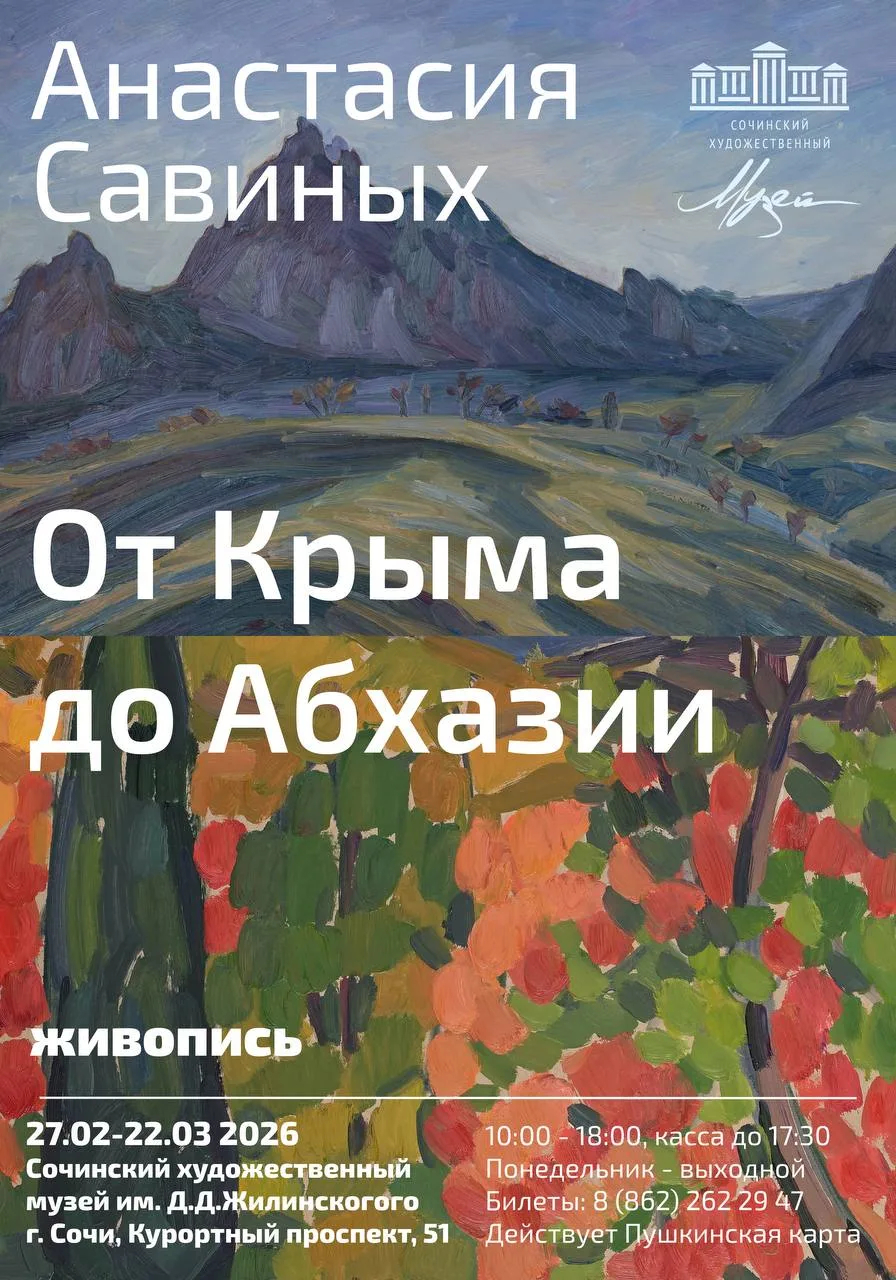 Выставка «От Крыма до Абхазии» Анастасии Савиных, представленная в Сочинском художественном музее им. Д.Д. Жилинского, продолжает и развивает эту культурную традицию, предлагая современное живописное осмысление южного побережья. Экспозиция объединяет южные пейзажи Черноморского побережья — от крымских берегов, Голубой бухты в Геленджике и Дивноморского до горных и прибрежных ландшафтов Абхазии.