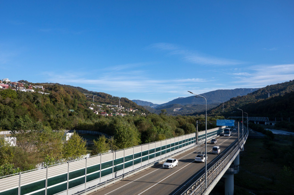 Поддерживаемая 12 опорами однополосная эстакада длиной 362 и шириной 7,9 метра в самой восточной части будущей разноуровневой развязки обхода Адлера будет огибать сверху автодорогу А-149 и русло реки Мзымта.