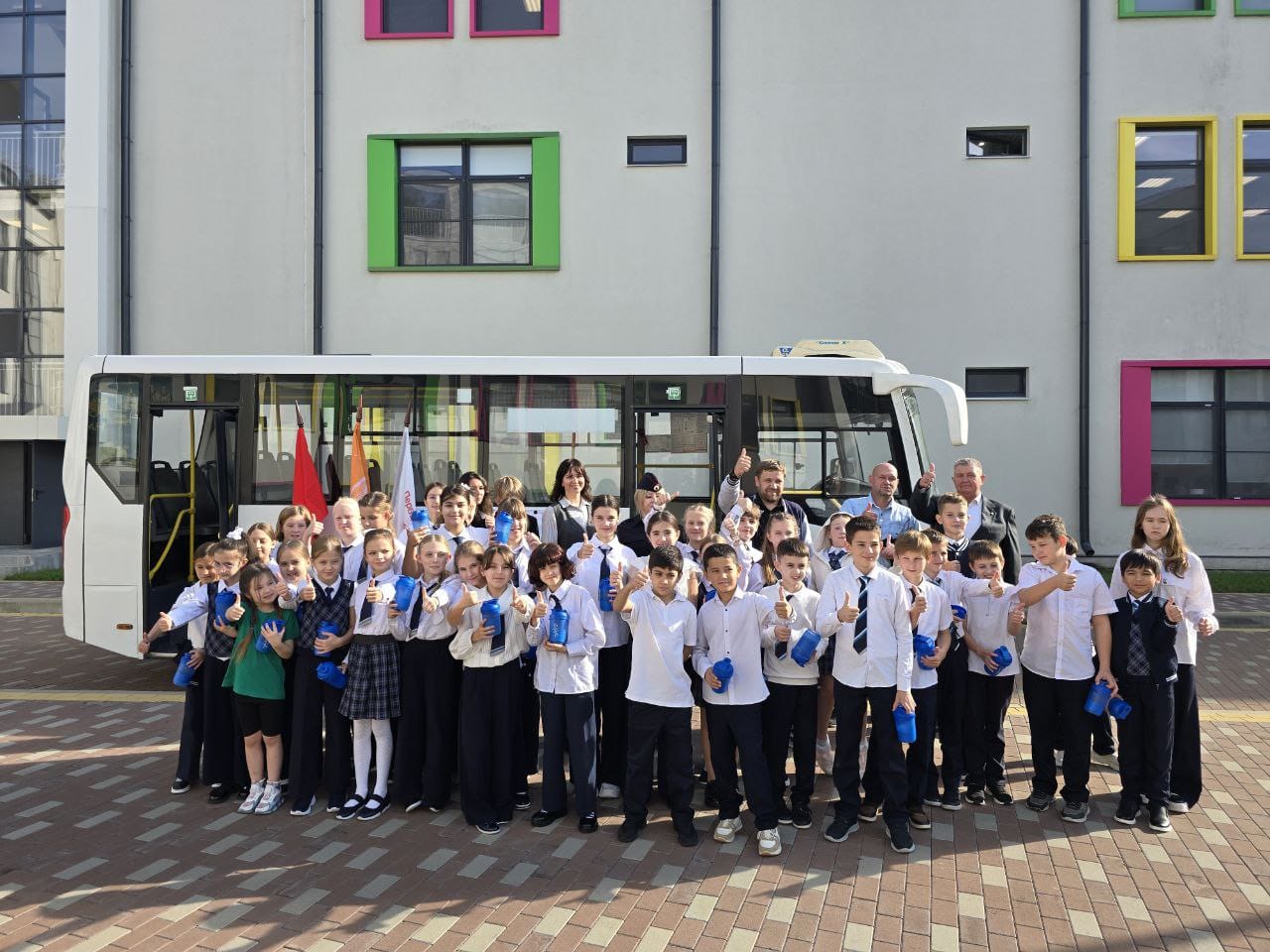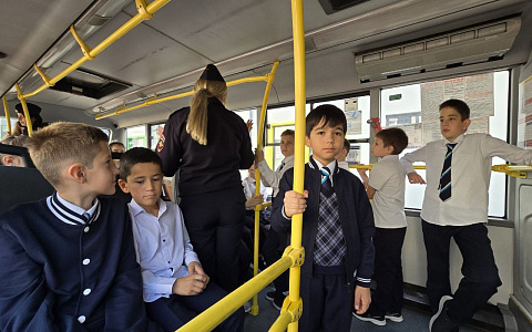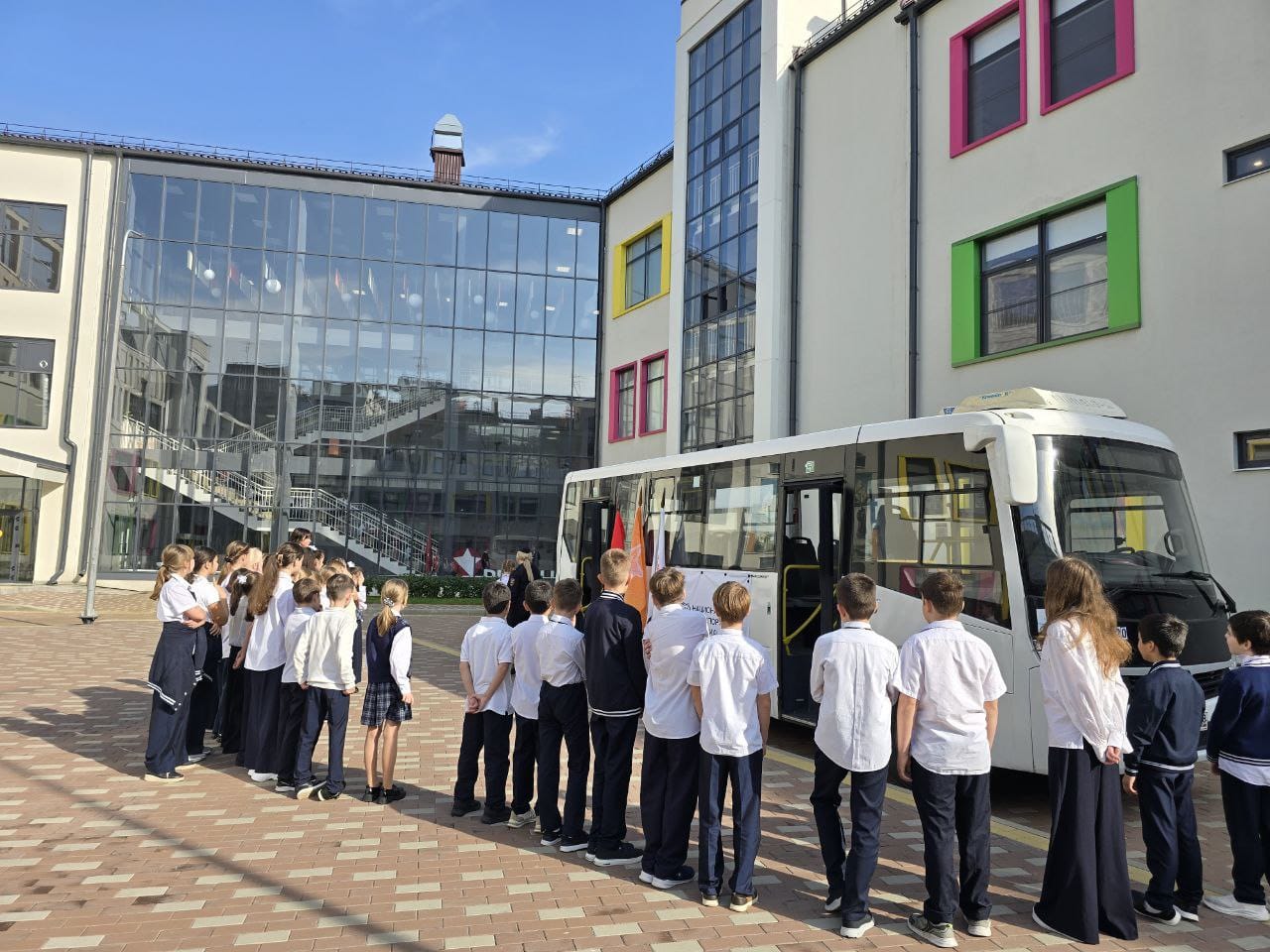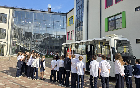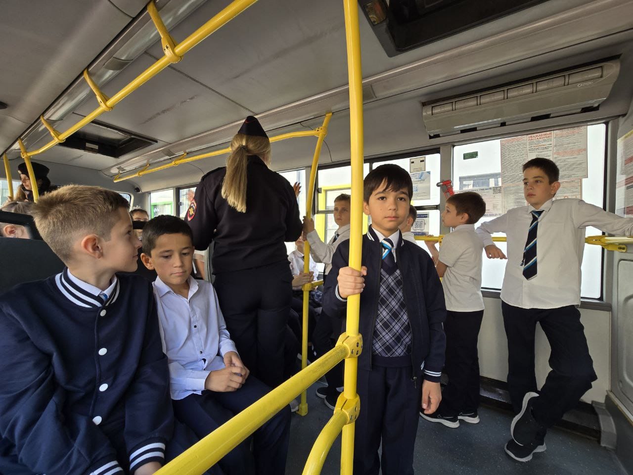 Импровизированный урок прошел в салоне автобуса, специально доставленного на территорию гимназии. Дети наглядно изучили правила поведения в общественном транспорте и повторили правила дорожного движения. В завершении мероприятия юным участникам дорожной акции вручили подарки – фирменные сувениры Национальной транспортной ассоциации.
