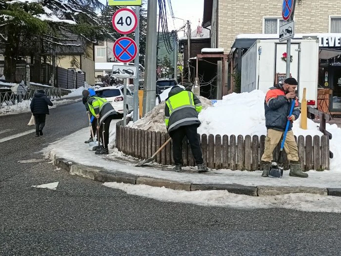 В Сочи продолжаются масштабные работы по расчистке проезжей части и пешеходных зон в Краснополянском поселковом округе.